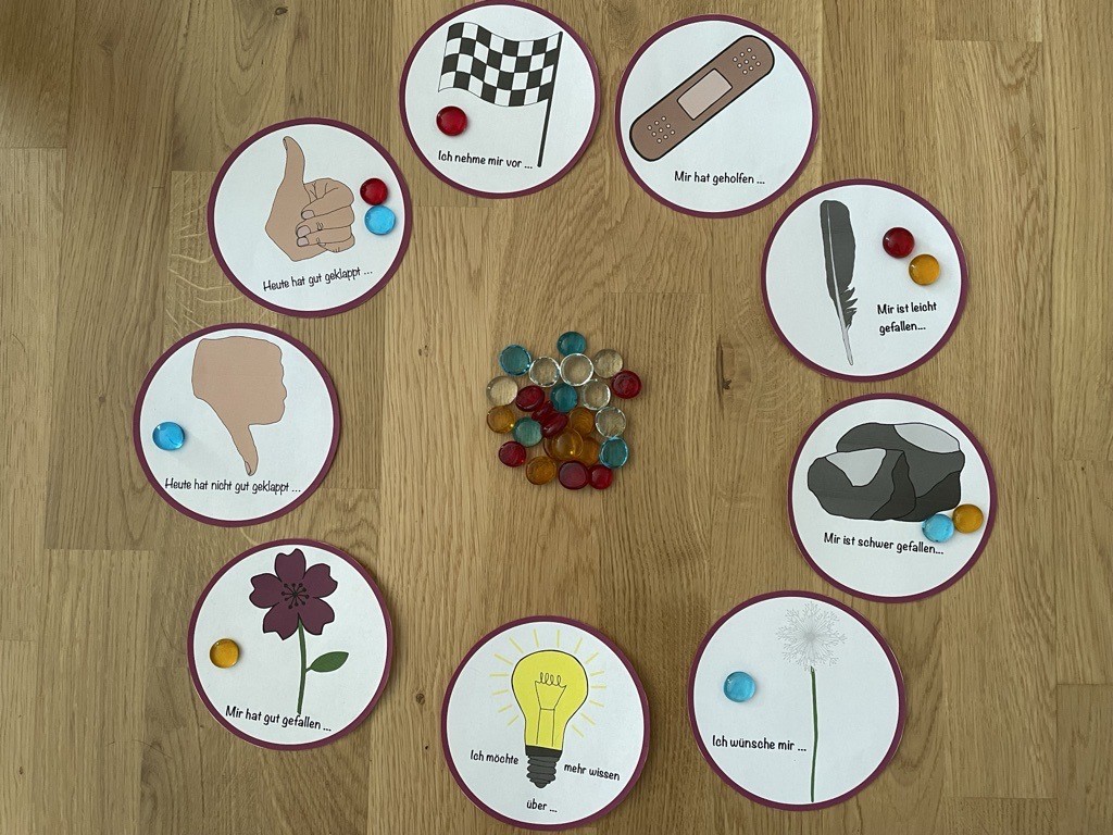 Zu Tagesbeginn bietet sich eine „Gefühlsrunde“ an. Diese kann Bestandteil des Morgenrituals sein oder als tägliche Aufgabe am Morgen erfolgen. Durch das Formulieren der eigenen Gefühle, wissen sowohl Lehrkraft als auch Lernende, wie es einer Schülerin bzw. einem Schüler an einem Tag geht und können ihr Verhalten demjenigen gegenüber anpassen bzw. individuell auf die Gefühle einzelner, wie Trauer oder Wut, eingehen. Bei einer „Gefühlsrunde“ ist es besonders wichtig, auf ein positives Miteinander und die Gefühlswelt der Schülerinnen und Schüler zu achten. Die Lehrkraft sollte als Vorbild agieren, indem sie genau zuhört, die Gefühle ernst nimmt und niemanden zu einer Äußerung zwingt. Lernende, die sich nicht äußern wollen, sollten in ihrer Entscheidung respektiert wernden und ein persönliches Gesprächsangebot bekommen.