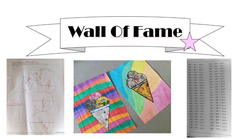 Mit der Wall of Fame können individuelle Leistungen oder Erfolge von Schülerinnen und Schülern gewürdigt werden. Dabei können unterschiedliche Materialien oder auch Beschreibungen von Leistungen aufgehängt werden. Sie eignet sich z. B. insbesondere für kreative Leistung im Fach Kunst, die ersten mit Zirkel gezeichneten Kreise von motorisch eingeschränkten Schülerinnen und Schülern sowie ein Arbeitsblatt mit vielen richtigen Rechenaufgaben von Lernenden, welche sich im Fach Mathematik deutlich weiterentwickelt haben. Die öffentliche Darstellung dient dazu, die Schülerinnen und Schüler in ihrem Selbstwert zu fördern und Lob, sowie Anerkennung unter den Lernenden zu evozieren. Deswegen ist es besonders wichtig darauf zu achten, möglichst alle Schülerinnen und Schüler zu berücksichtigen.