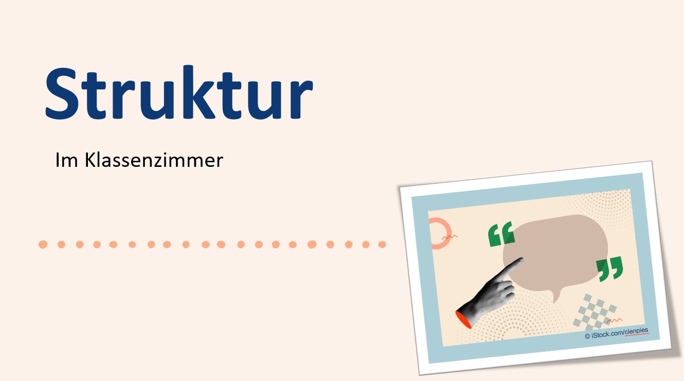 Bereits Hilbert Meyer verweist in seinen „Zehn Merkmalen guten Unterrichts“ zu Beginn der 2000er-Jahre auf die enorme Bedeutung von klar strukturierten Lehr- und Lernprozessen. Meyer nutzt die Metapher eines permanent sichtbaren „roten Fadens“, der jederzeit erkennbar ist, als Kennzeichen für strukturierten Unterricht. Des Weiteren zeigt sich eine klare Strukturierung etwa durch eindeutige Rollen, Lehrersprache und Aufgabenstellungen sowie plausible Unterrichtsschritte und rechtzeitig bereit gestelltes Material.