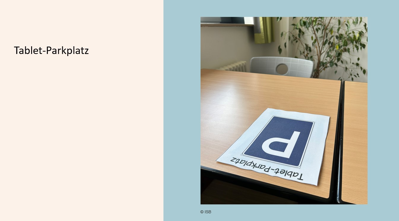 - Klebestreifen auf Tischflächen kennzeichnen den Platz für Materialien an (z. B. Federmäppchen oder Tablet)