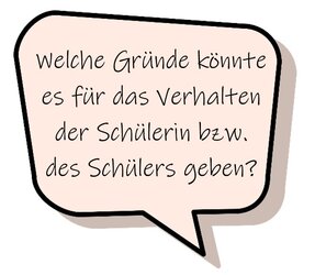 Unterricht ist ein höchst komplexer Lern- und Interaktionsprozess mit vielen verschiedenen Personen und Persönlichkeiten, die teilweise unterschiedliche Zielsetzungen verfolgen. Dabei können sich Lehrkräfte durch Verhaltensweisen von Schülerinnen und Schülern herausgefordert fühlen. Die grundlegende Haltung, dass das Handeln von Schülerinnen und Schüler immer einen guten Grund hat (siehe auch Web-Magazin zur Schulentwicklung bei herausforderndem Verhalten ), ermöglicht es Lehrkräften, das Verhalten nicht auf sich selbst zu beziehen und gelassener auch mit unakzeptablem Verhalten umzugehen.