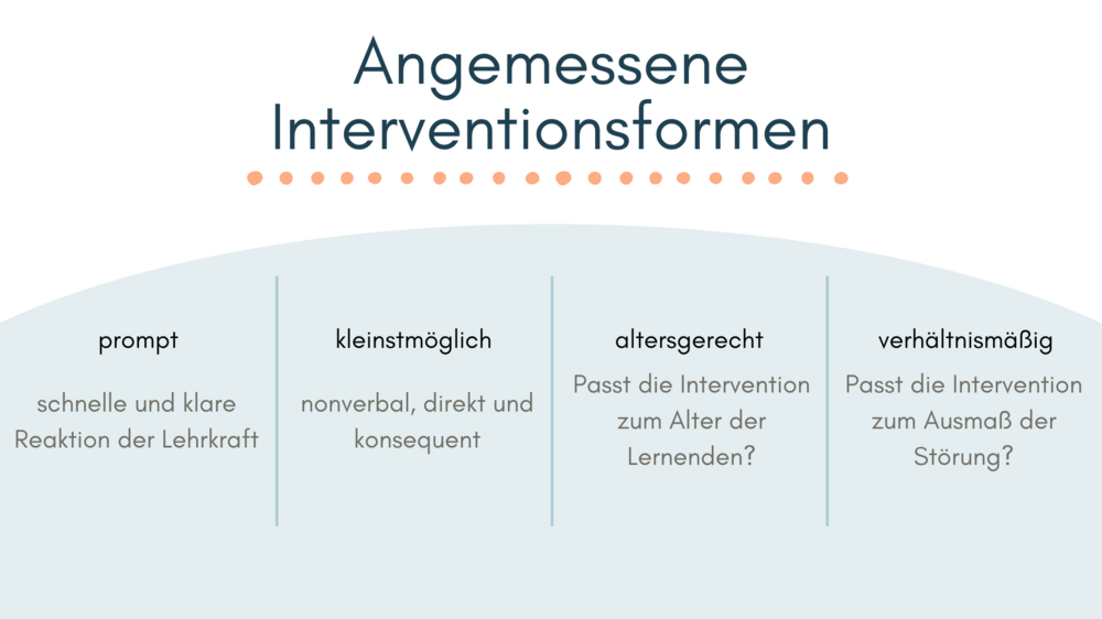 Neben dem Konzept der Neuen Autorität und einer präventiven, proaktiven Klassenführung (siehe Beiträge auf diesem Portal) bieten sich je nach Art der Verhaltensweisen der Schülerinnen und Schüler unterschiedliche Formen der Intervention an: