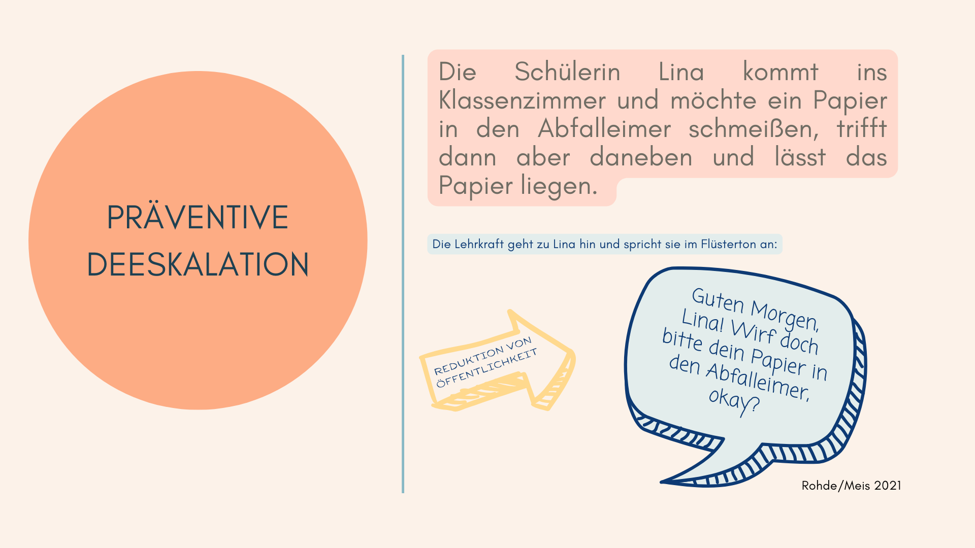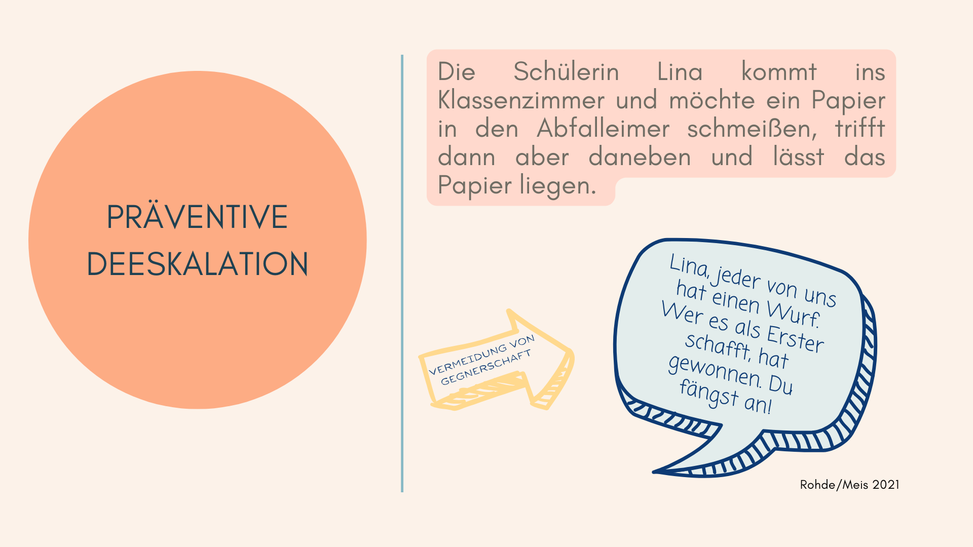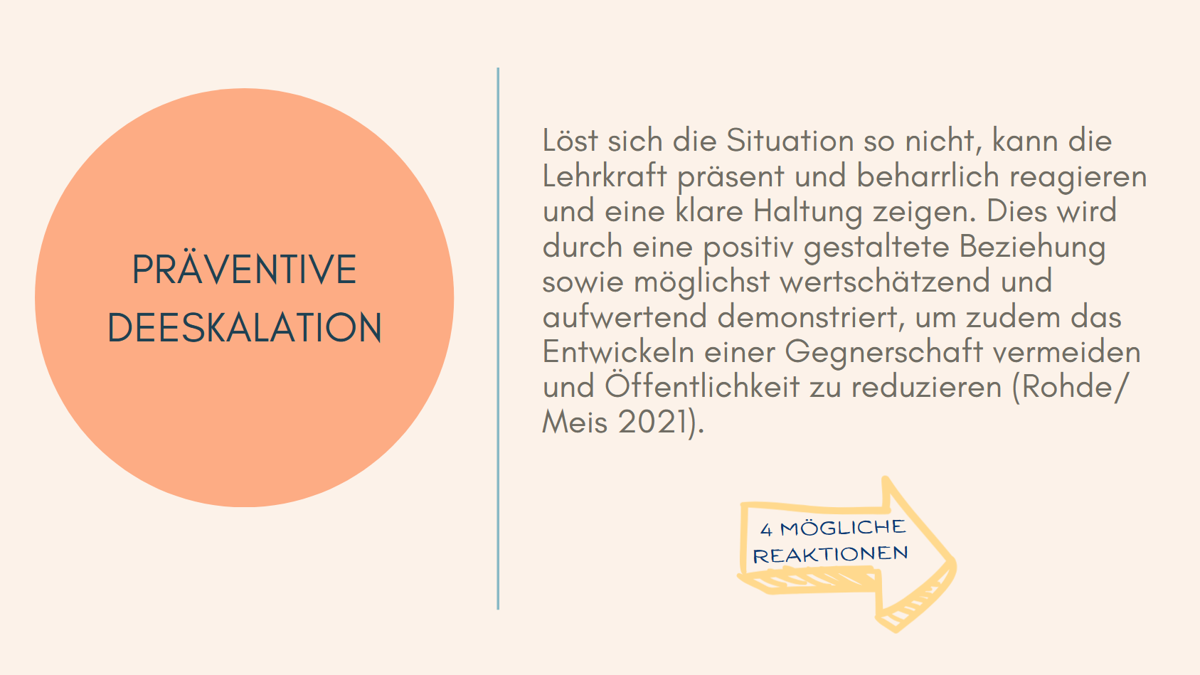 Trotz aller Bemühungen um eine aktive Intervention wird sich herausforderndes Verhalten bei Schülerinnen und Schülern nicht gänzlich verhindern lassen. Verschiedene Techniken und Methoden unterstützen reaktive Interventionen: