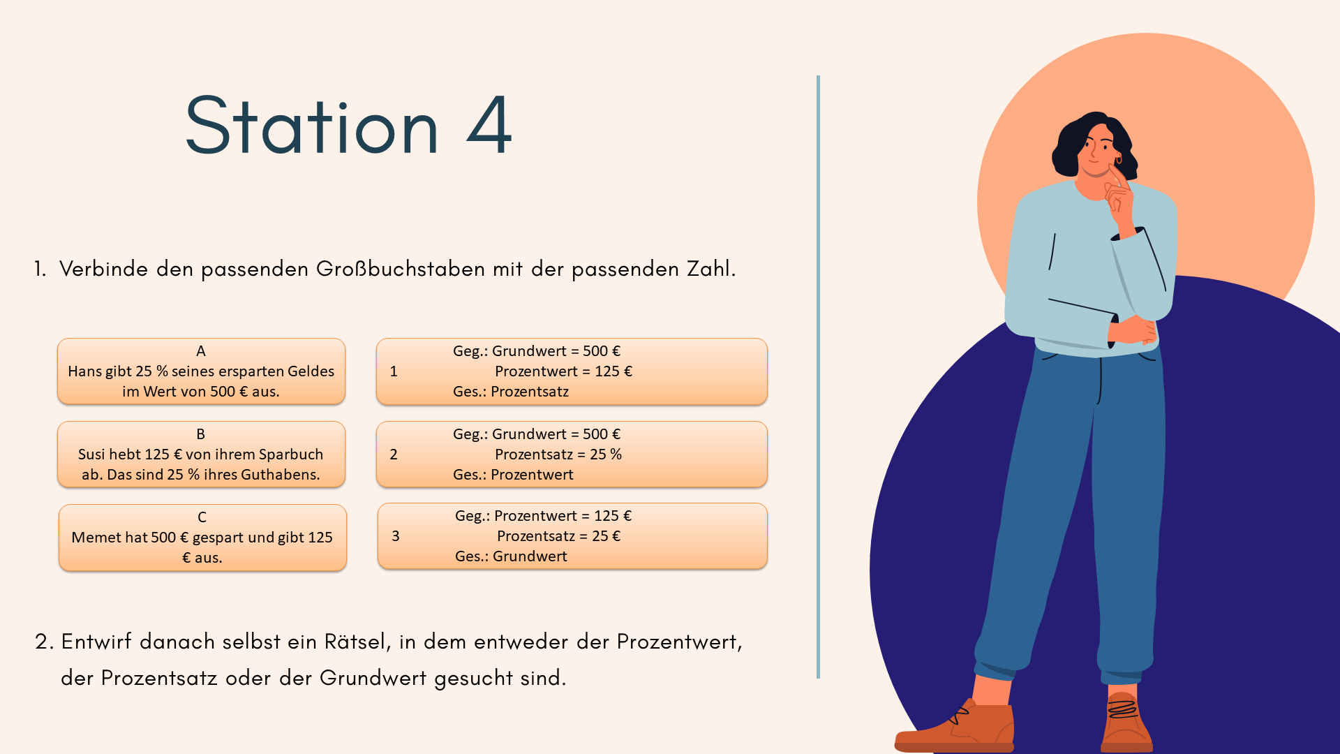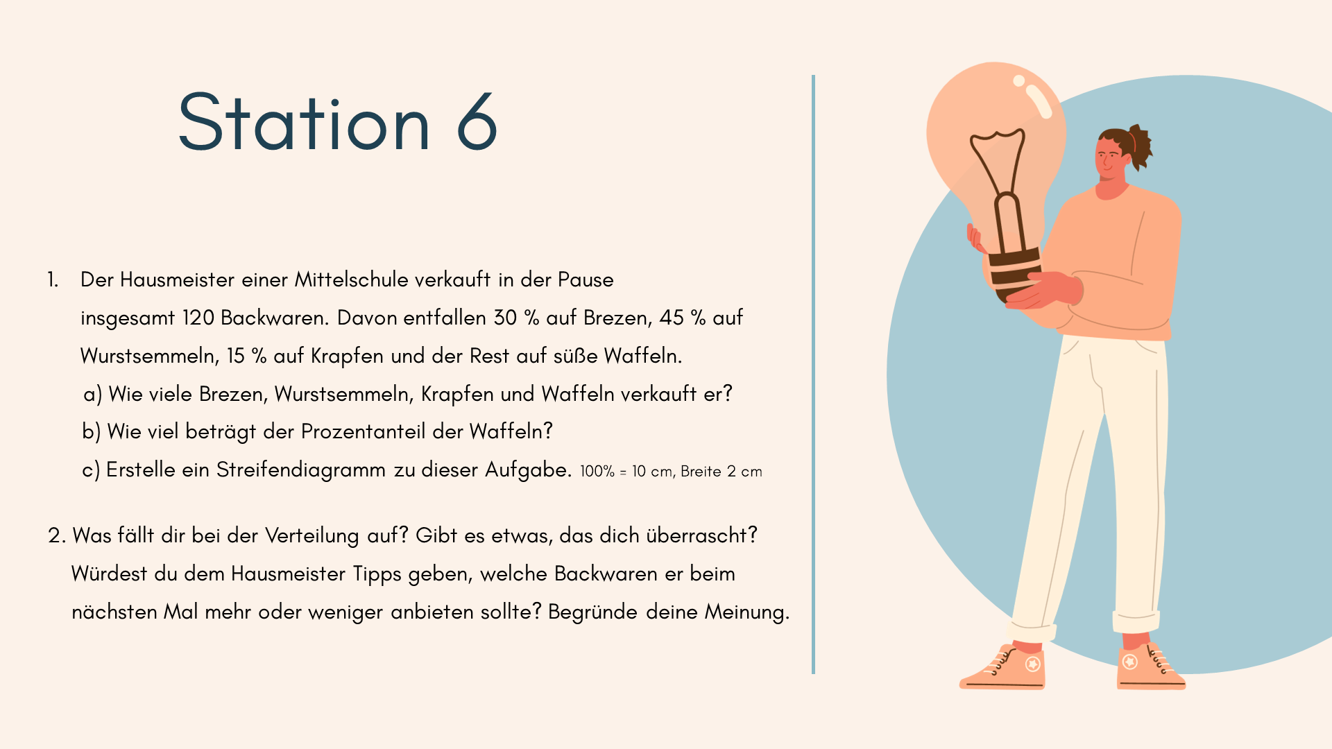 Eine Übungstheke ist eine Unterrichtsmethode, bei der die Schülerinnen und Schüler selbstständig aus verschiedenen Aufgaben oder Materialien auswählen können, um ein Thema zu bearbeiten. Die Aufgaben sind oft auf Karten oder in Stationen organisiert - ähnlich wie an einer Theke, an der man sich etwas aussuchen kann. Voraussetzung für eine passgenaue Auswahl der Aufgaben ist, dass sowohl die Lehrkraft als auch die Lernenden über den individuellen Lernstand informiert sind. So können die Schülerinnen und Schüler in ihrem eigenen Tempo arbeiten und selbst entscheiden, welche Aufgaben sie bearbeiten. Die Lehrperson begleitet und unterstützt sie dabei. Dadurch wird das Lernen individueller und eigenverantwortlicher.