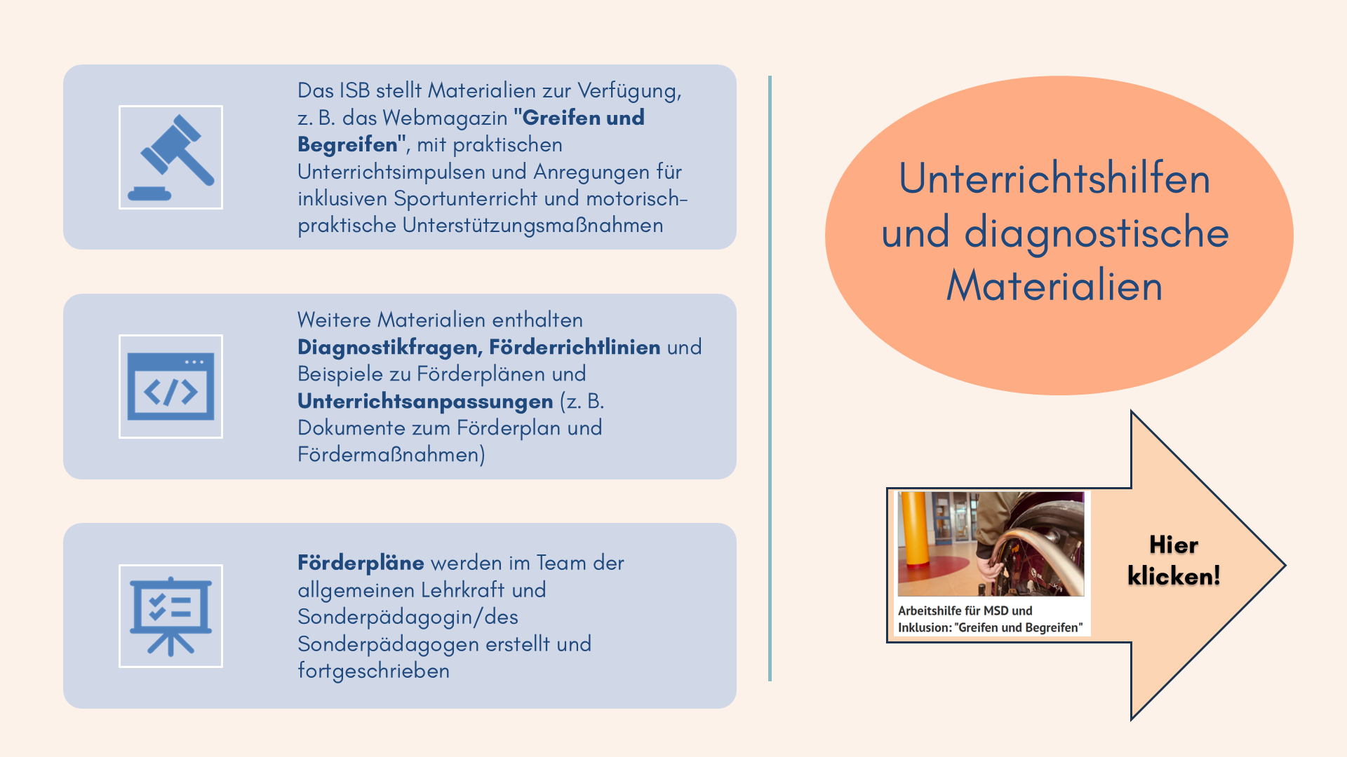 - Zahlreiche Materialien und Angebote des ISB zum Förderschwerpunkt “körperlich-motorische Entwicklung”