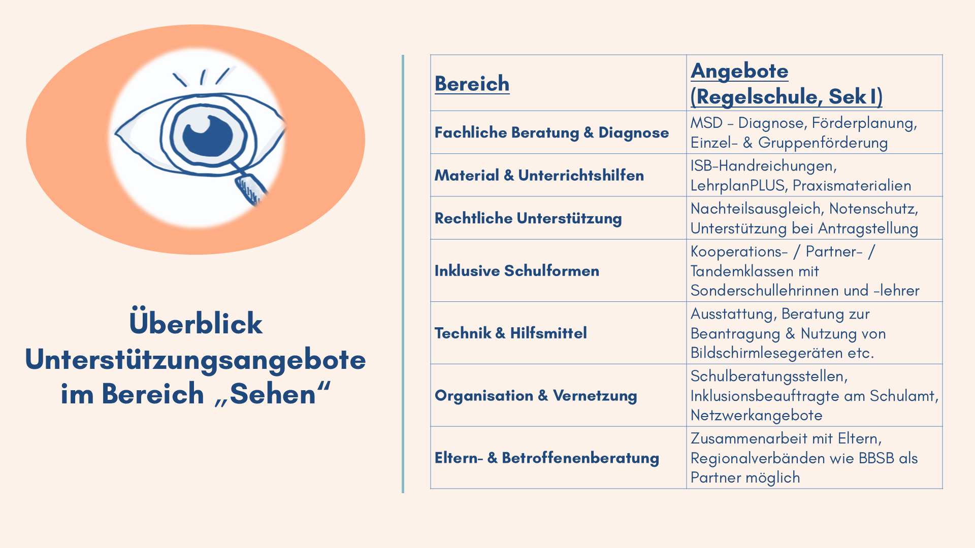 - Zahlreiche Materialien und Angebote des ISB zum Förderschwerpunkt “Sehen”