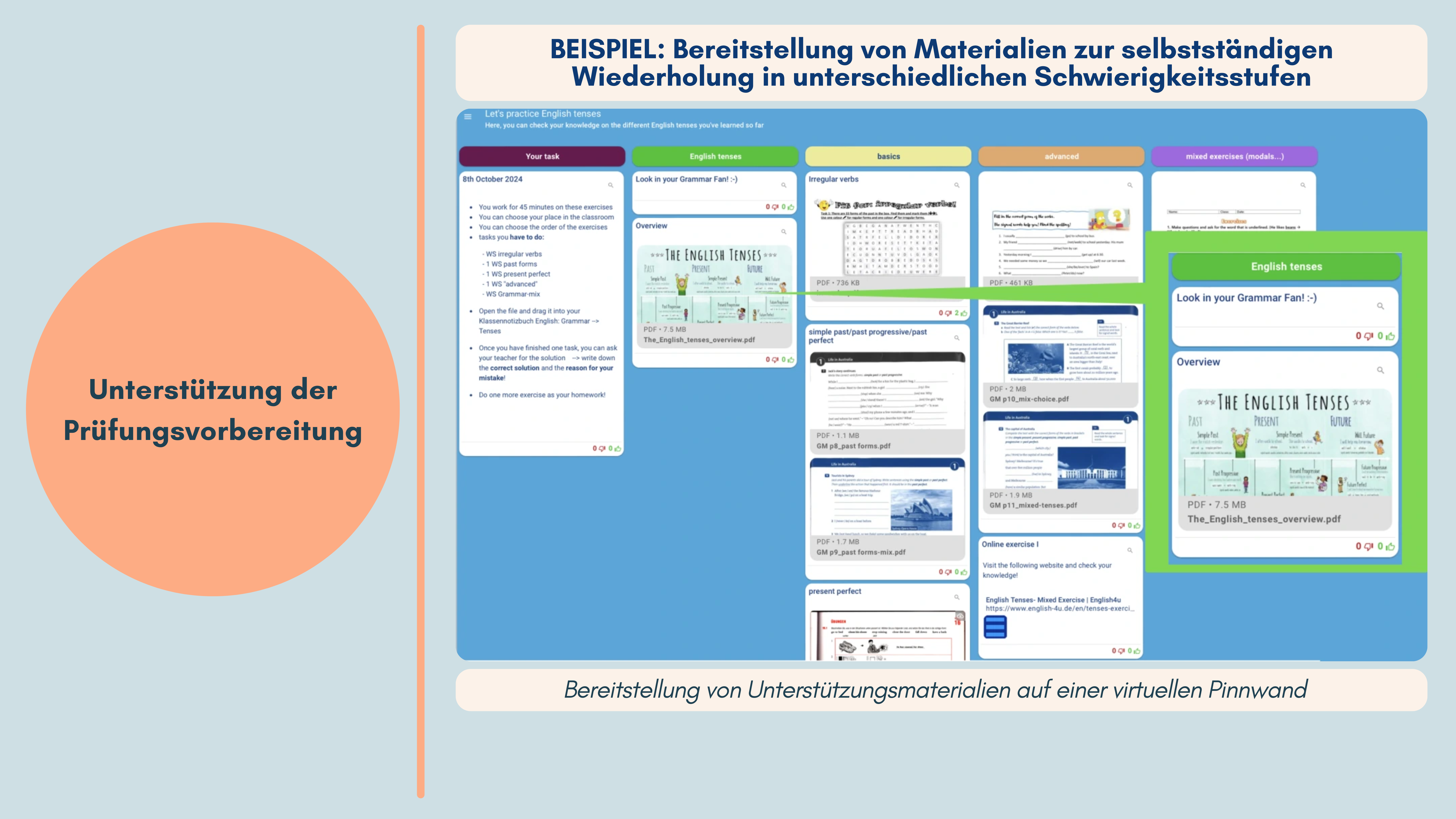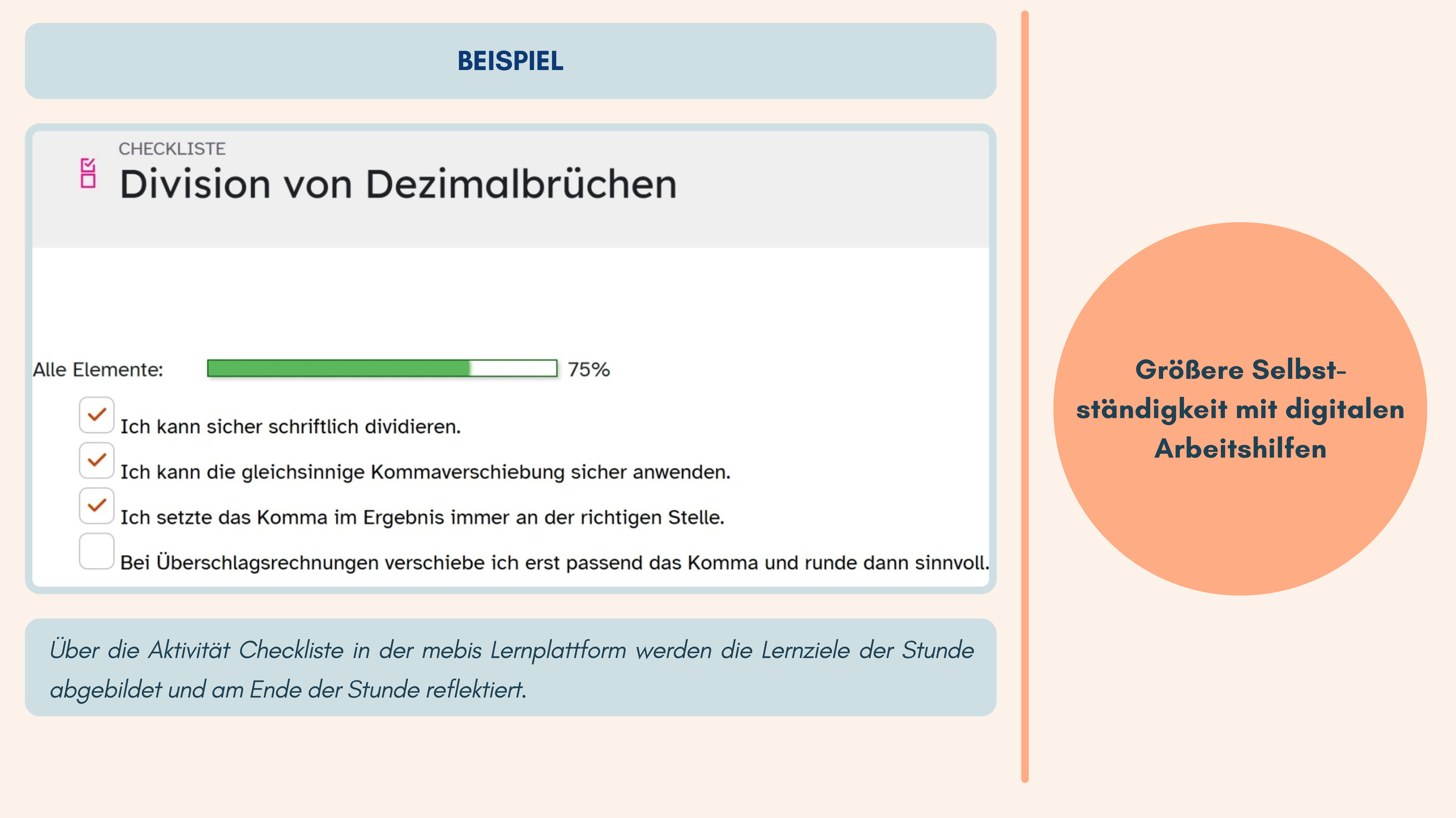 - einen einfachen Zugang für Lernende zu digitalen Arbeitshilfen zur Förderung des eigenverantwortlichen Lernens und individueller Zielverfolgung.