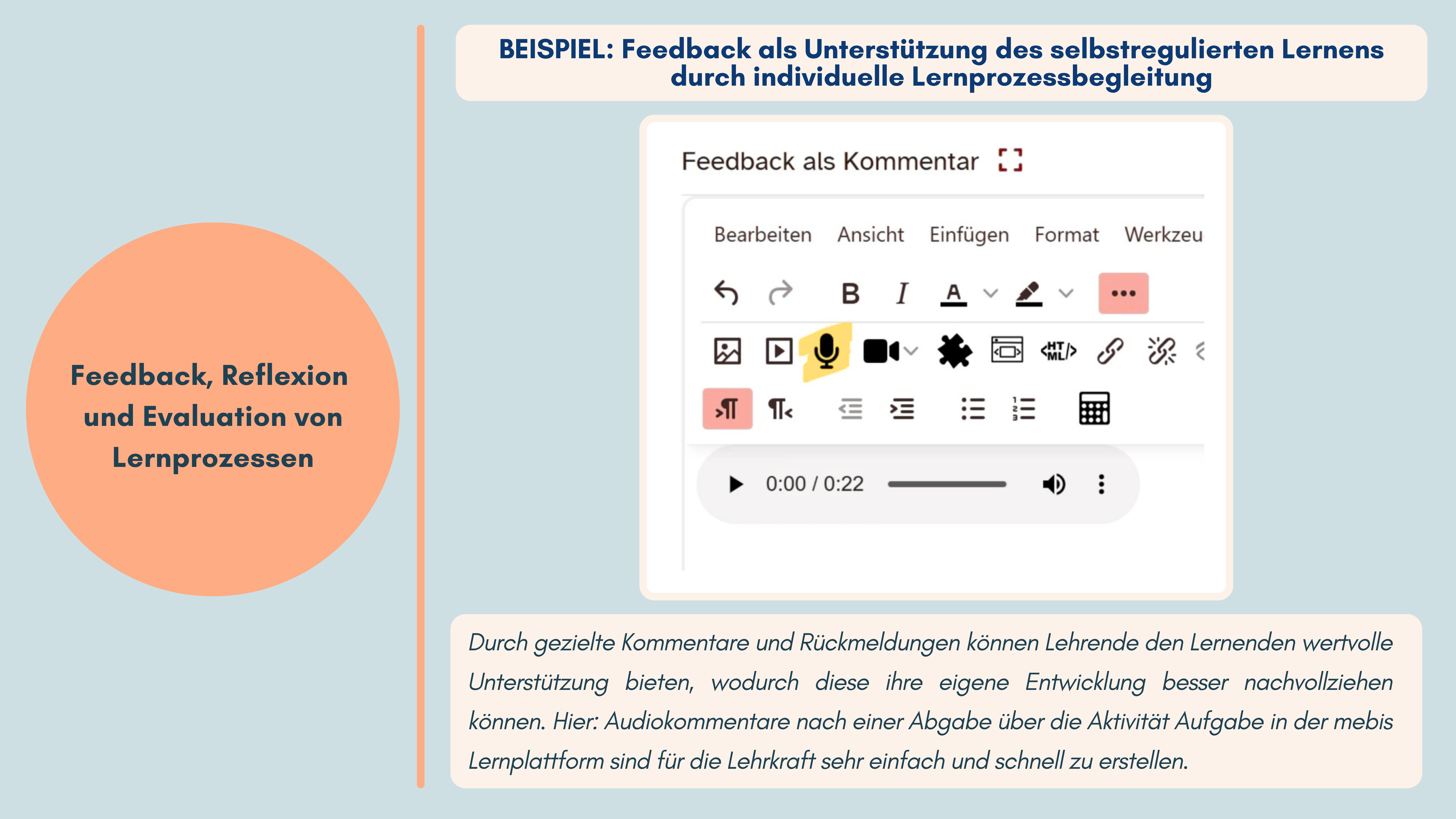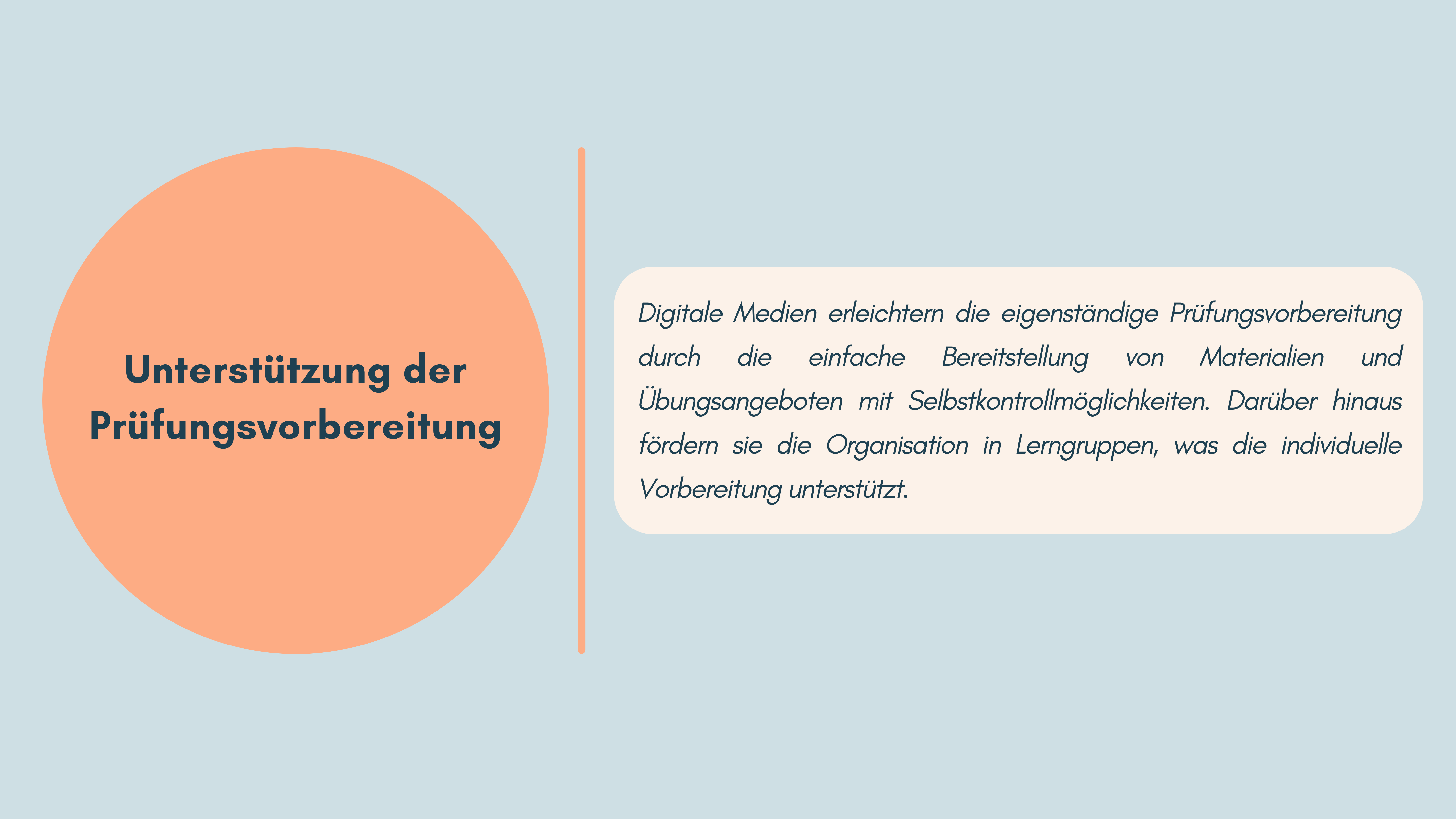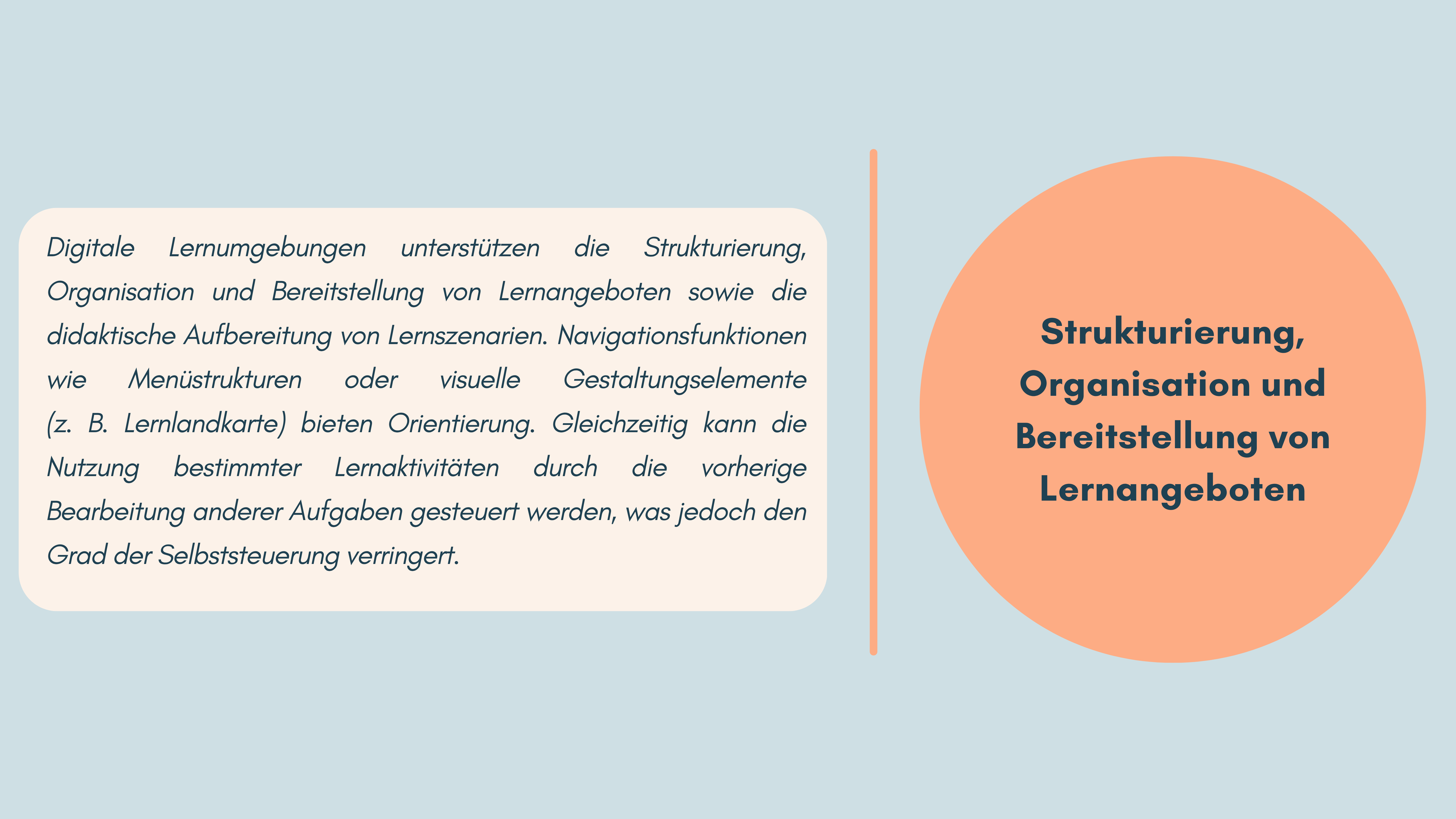 Im digital gestützten Unterricht werden Schülerinnen und Schüler durch lernförderliche Unterstützungsangebote in ihrem individuellen Lernprozess begleitet. Die dadurch ermöglichte selbstorganisierte Bearbeitung von Inhalten und Aufgaben fördert ihre Autonomie und befähigt sie, den Lernprozess zunehmend selbstständig zu steuern.