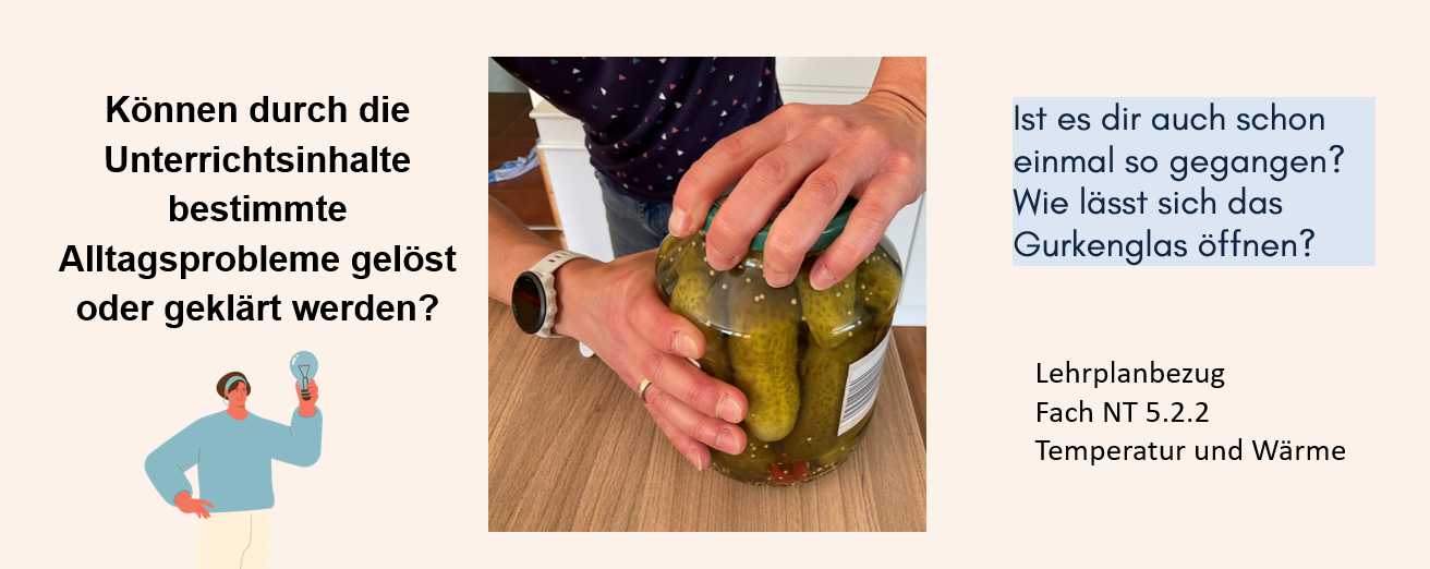 Material zu Temperatur und Wärme Volumenänderung Gurkenglas öffnen